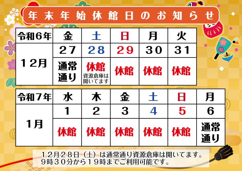 年末年始休館日のお知らせ(公民館、資源回収倉庫)