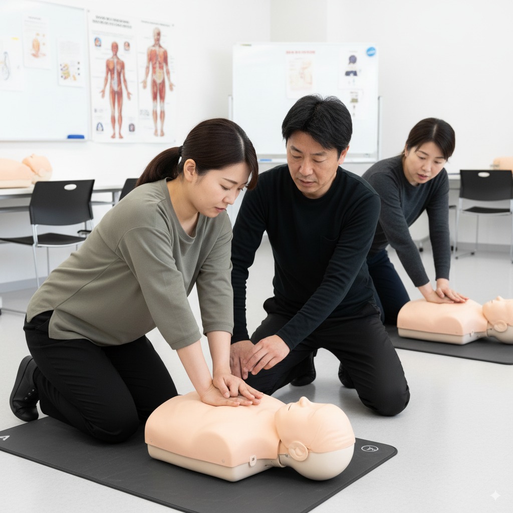 ・心肺蘇生(胸骨圧迫、人工呼吸):もしもの時に、自信を持って行動できるスキルを習得します。