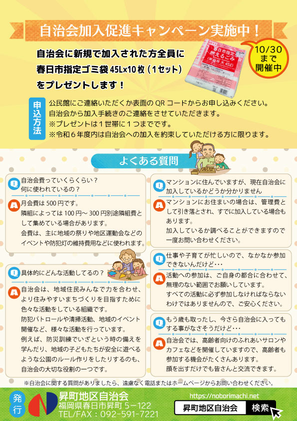 この度、加入率の減少に歯止めをかけるため、「自治会加入促進キャンペーン」を実施いたします。
