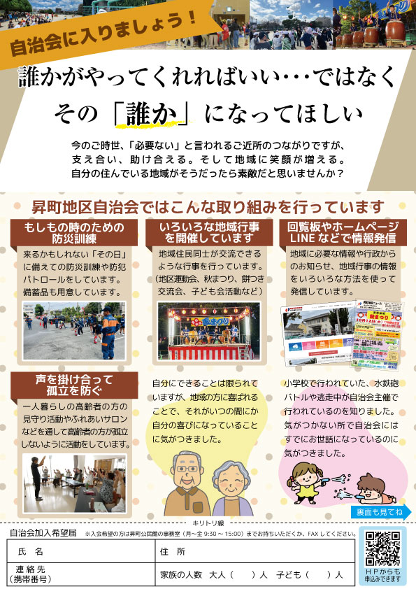 また、お知り合いの皆様にも、自治会への加入を呼びかけていただけますと幸いです。