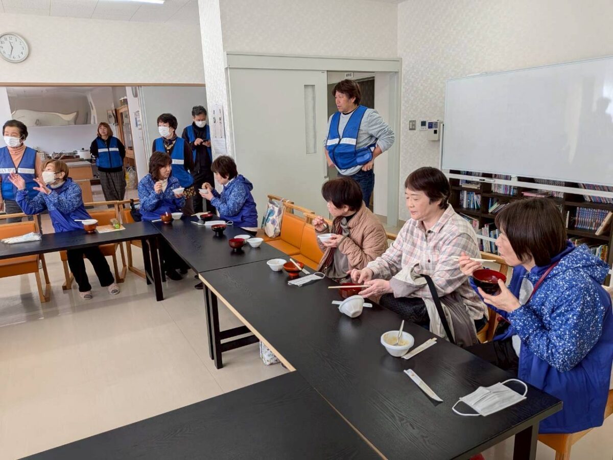 講習終了後には、自治会で備蓄している非常食の試食会を開催。けんちん汁やスープを囲みながら、防災への関心を高める機会となりました。