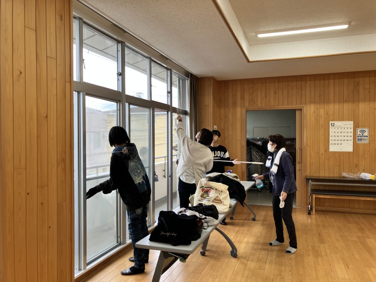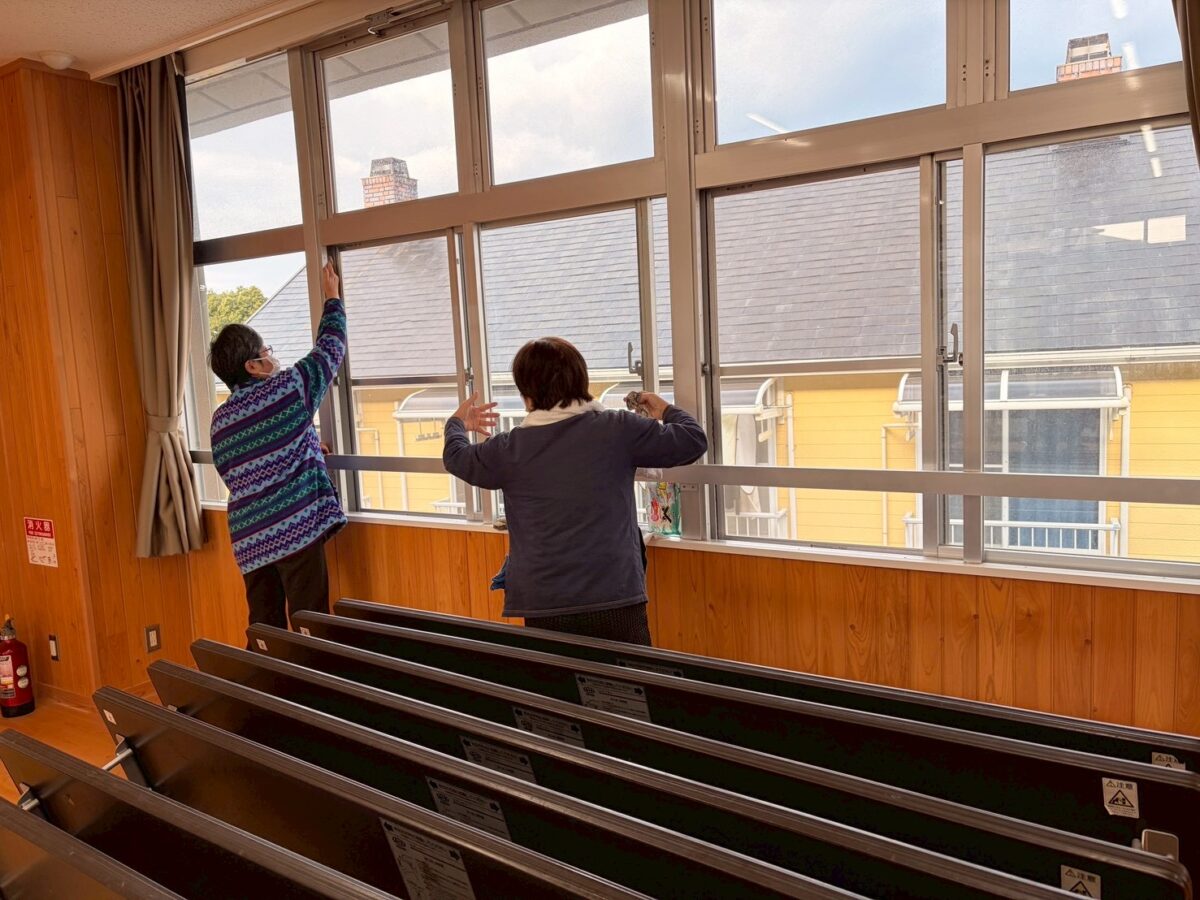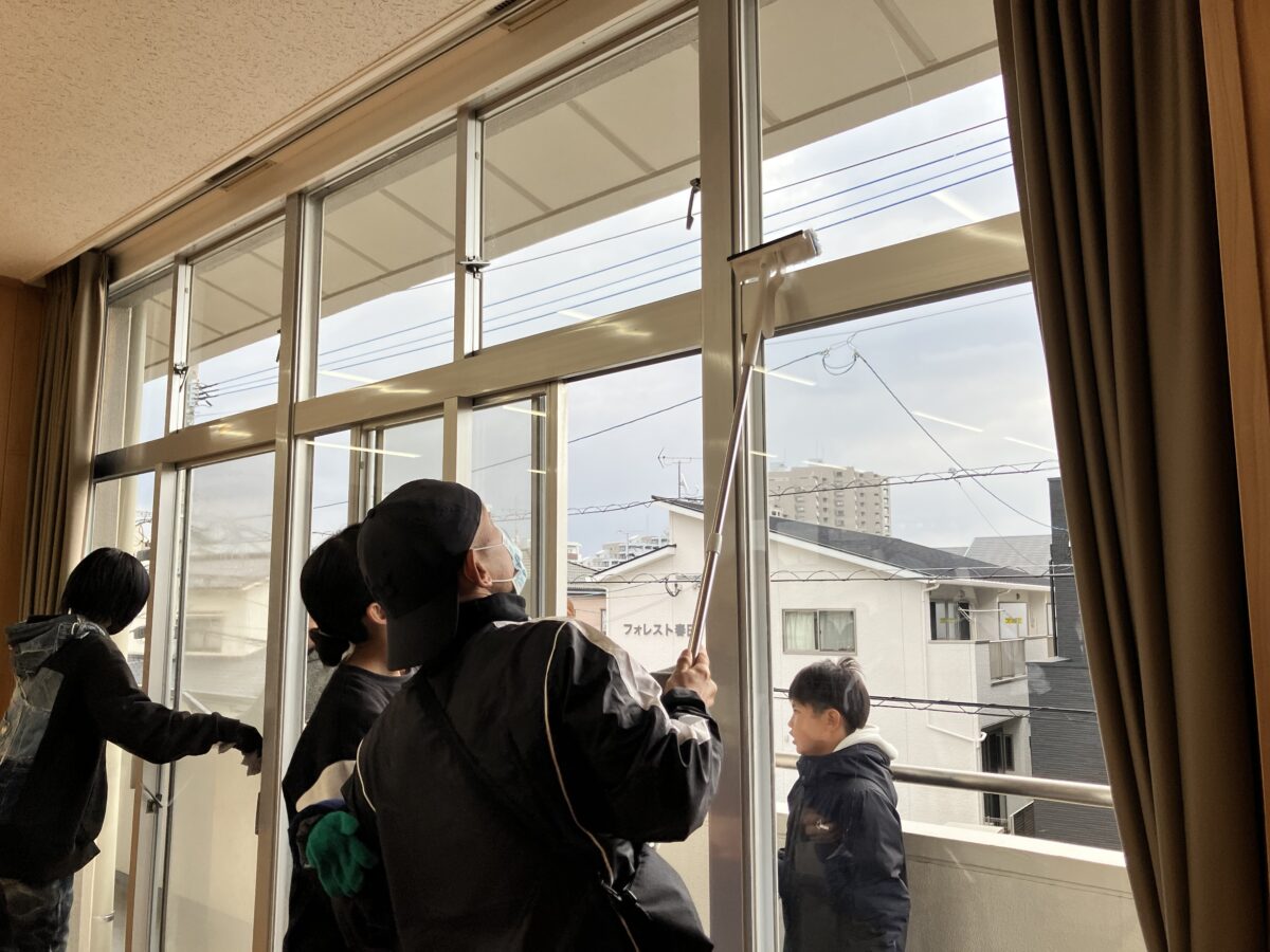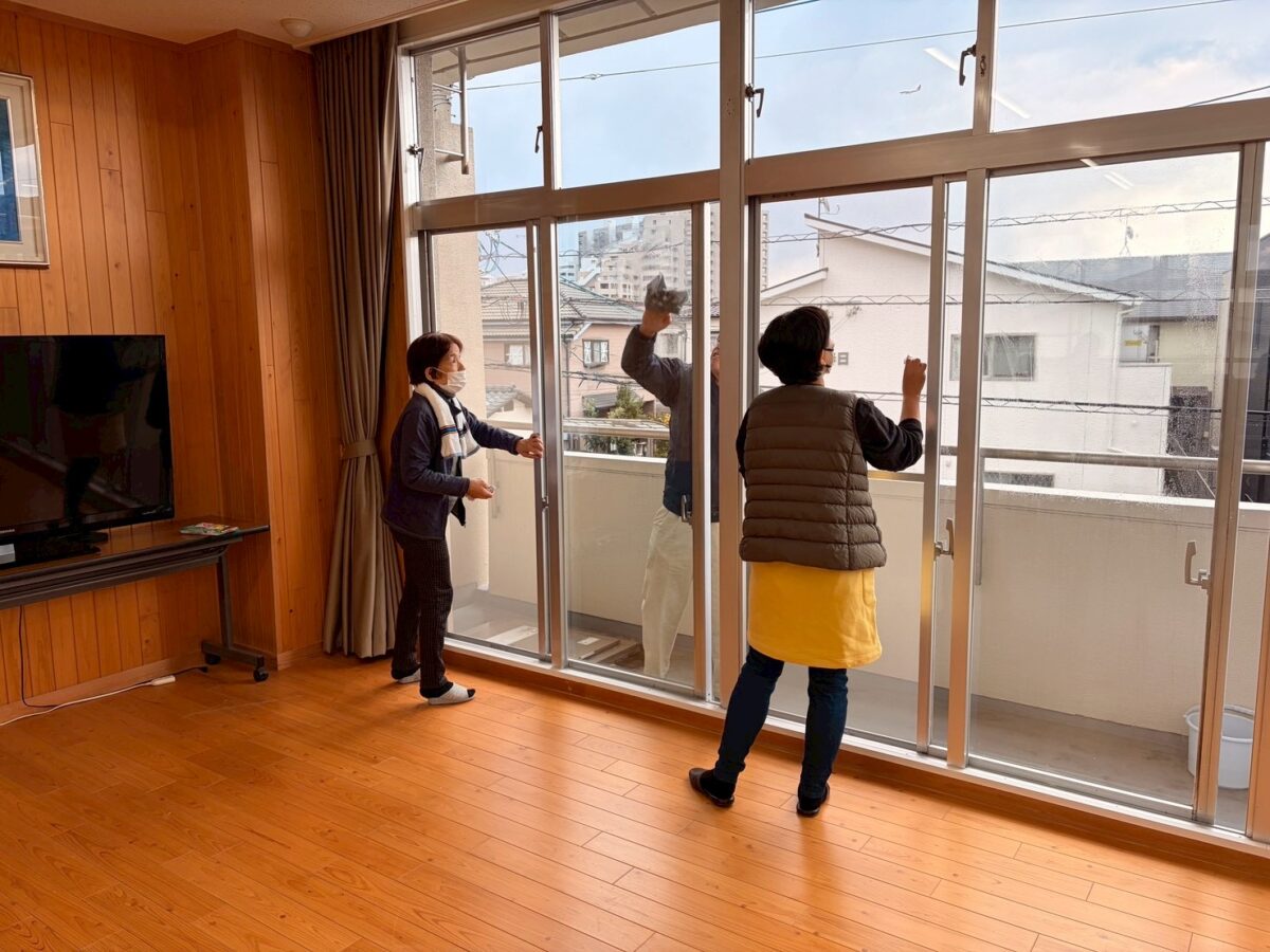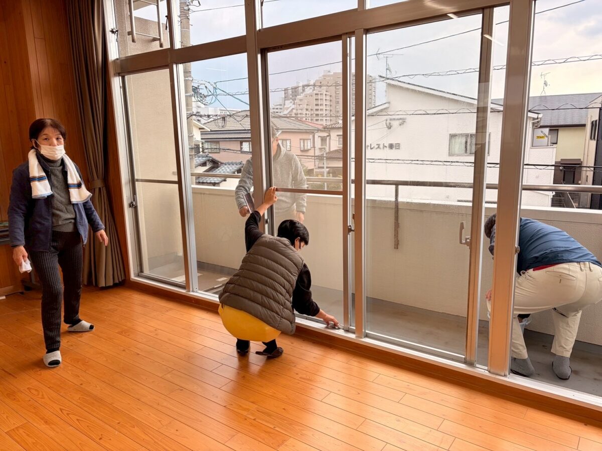 窓ガラスや網戸、トイレなどを分担して清掃し、皆さんが手際よく作業を進めてくださったおかげで、約1時間ほどで作業を終えることができました。