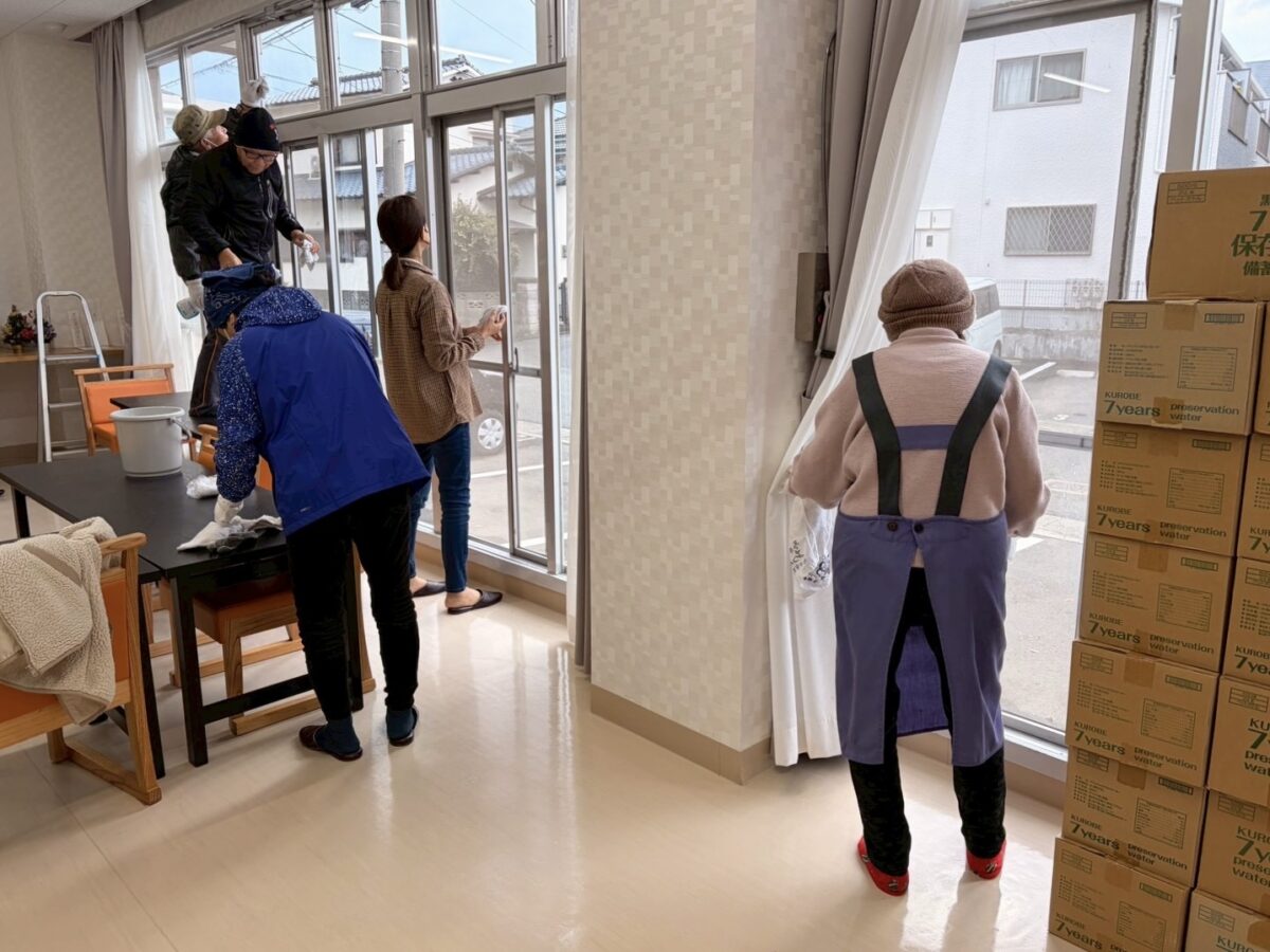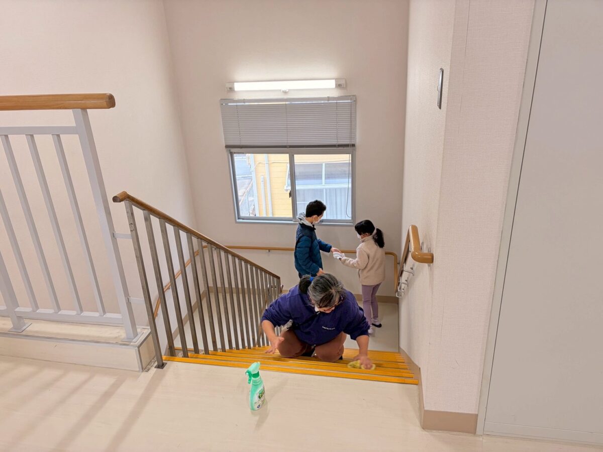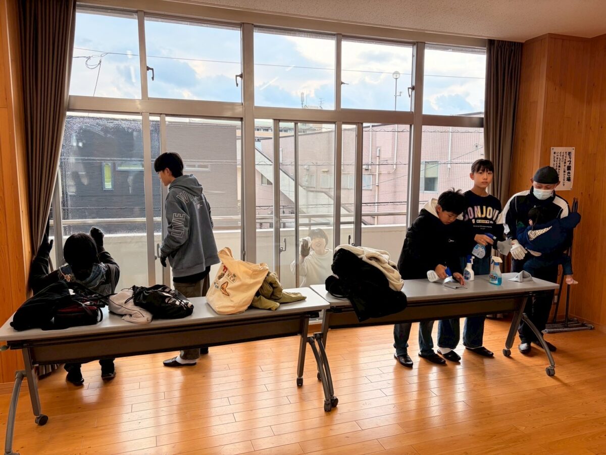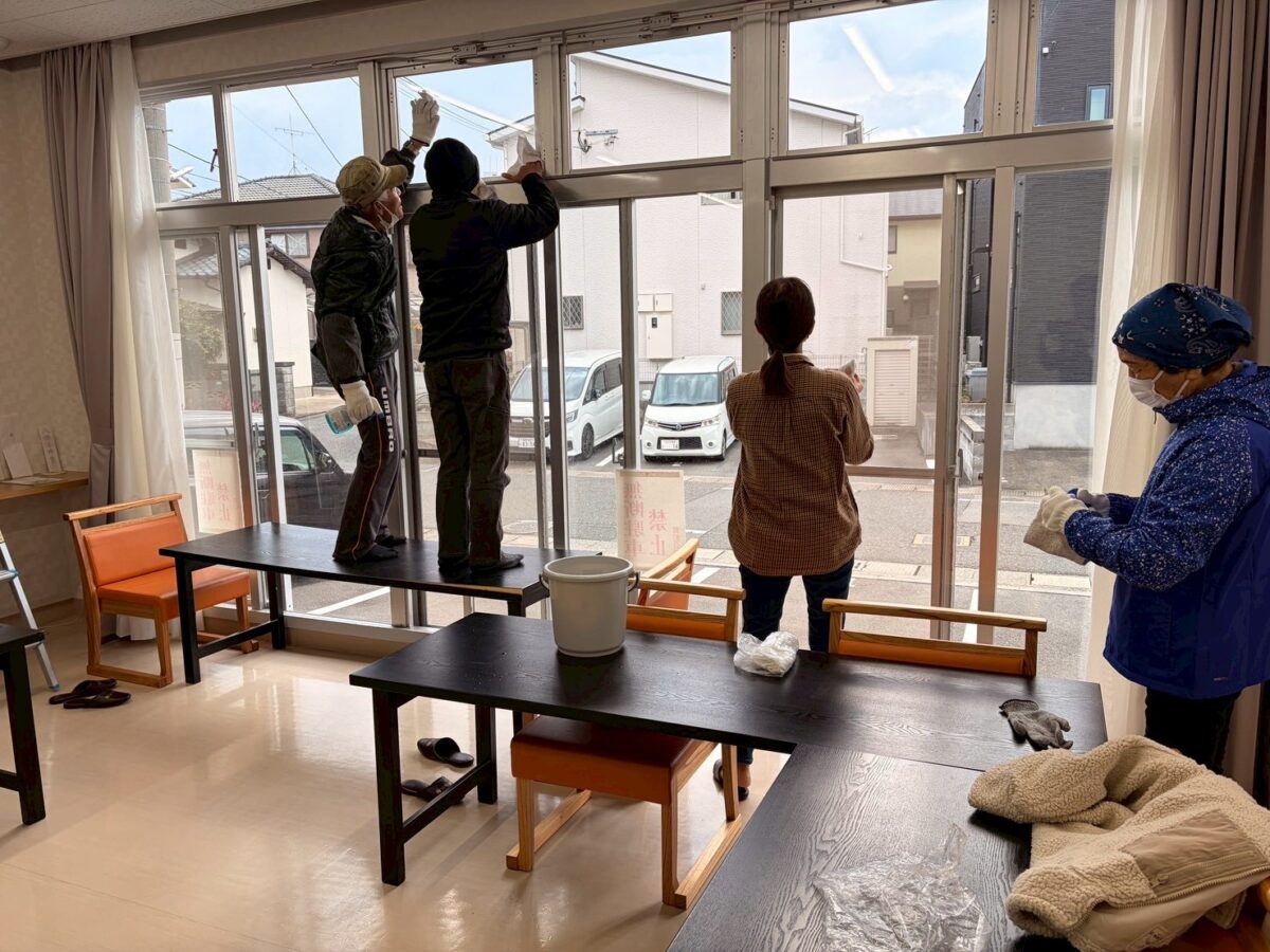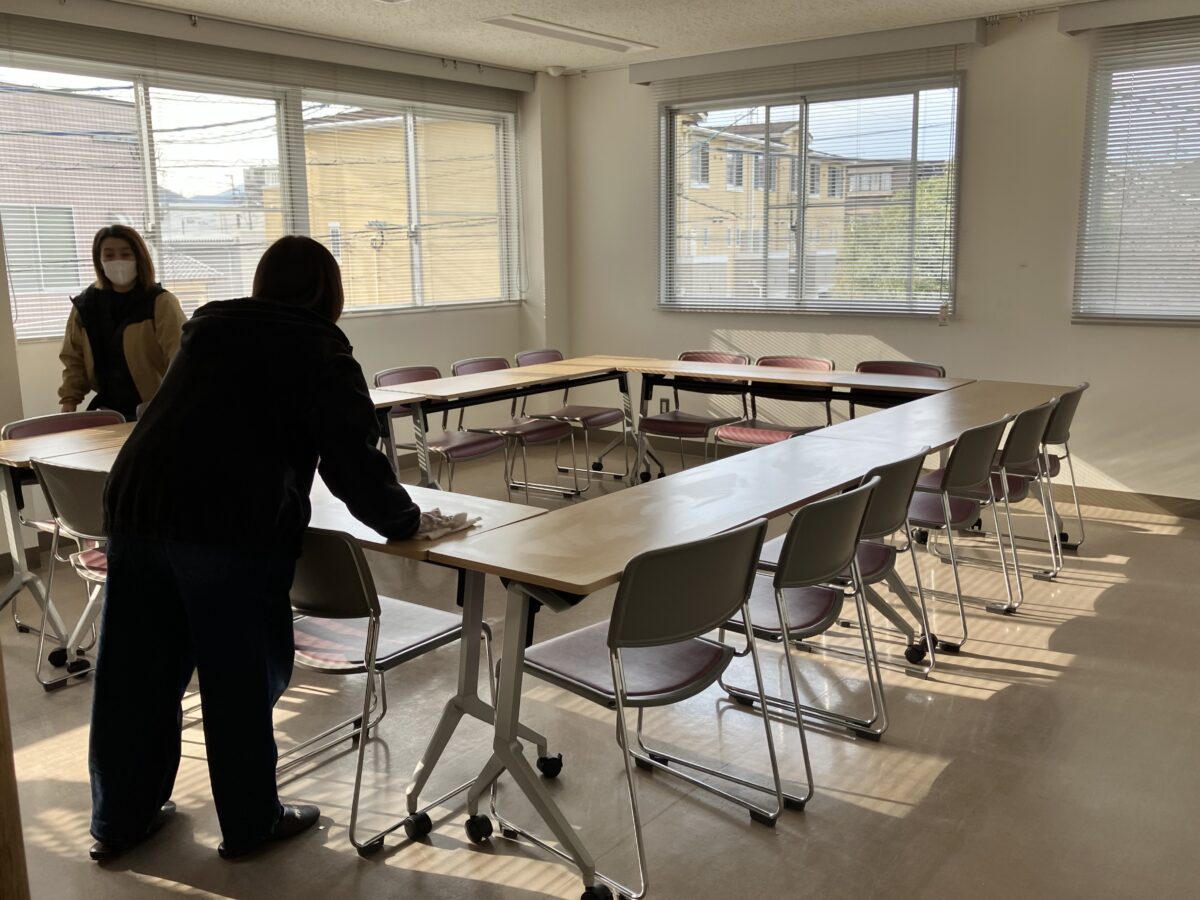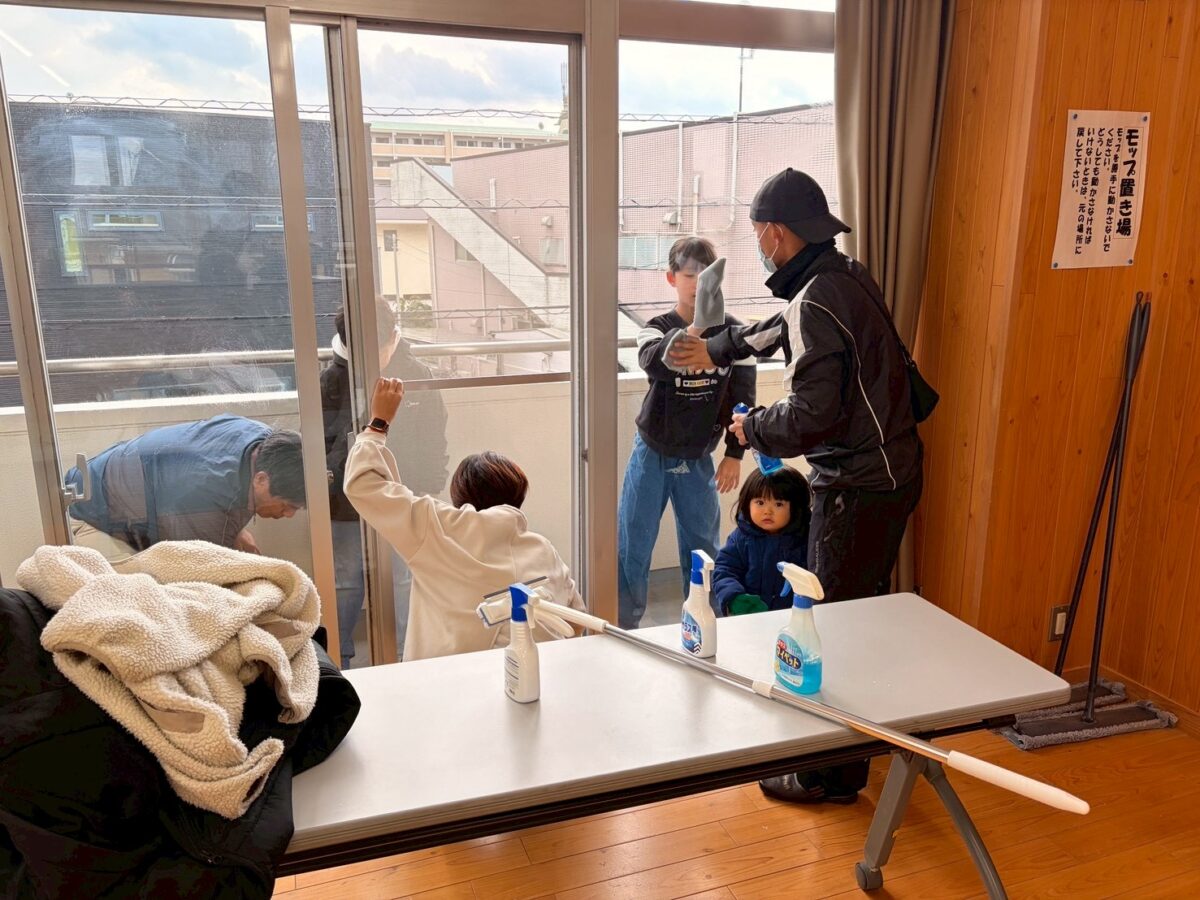 窓ガラスや網戸、トイレなどを分担して清掃し、皆さんが手際よく作業を進めてくださったおかげで、約1時間ほどで作業を終えることができました。