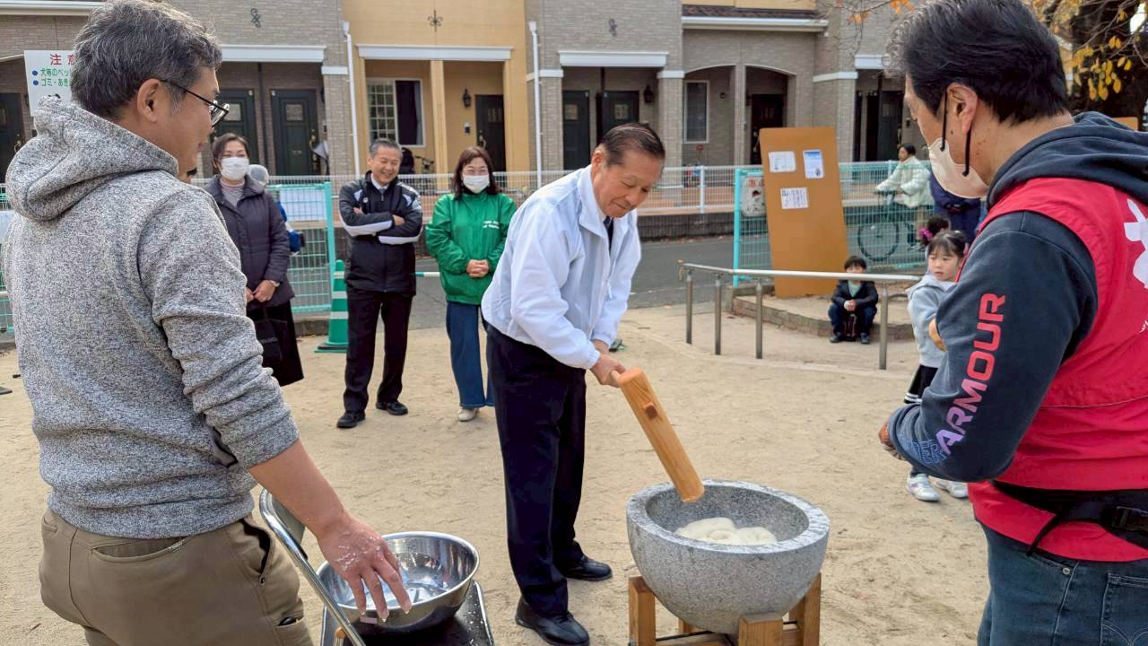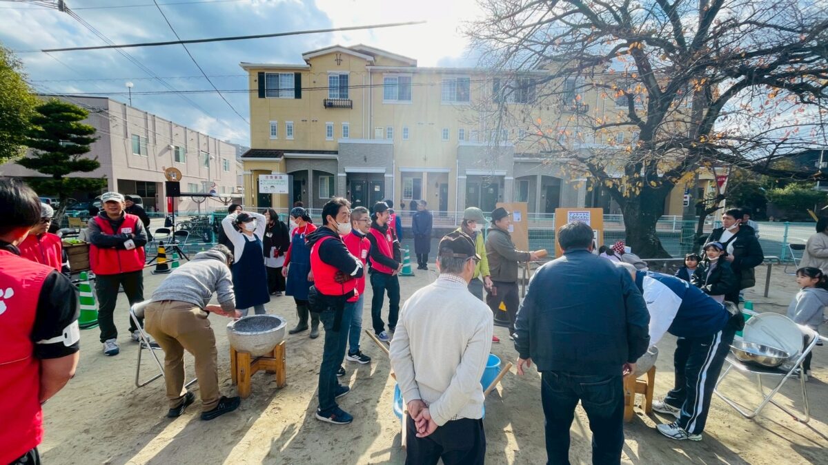 12月7日(日)に、公民館前の昇町児童遊園(通称:ロケット公園)にて、恒例の自治会行事「昇町地区もちつき交流会」を開催いたしました。